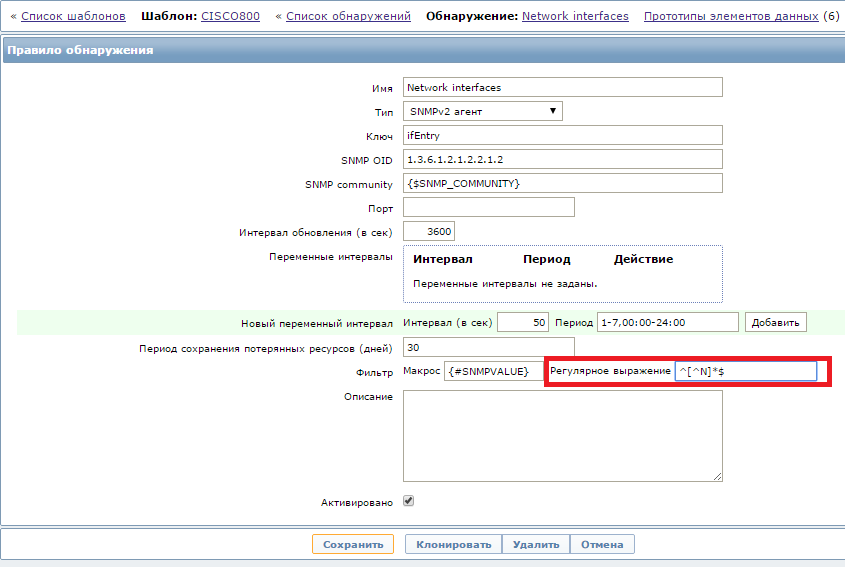 {$SNMP_COMMUNITY} = имя community указанное в конфигурации CISCO, например "public"Общие данные Группы прототипов элементов данных
