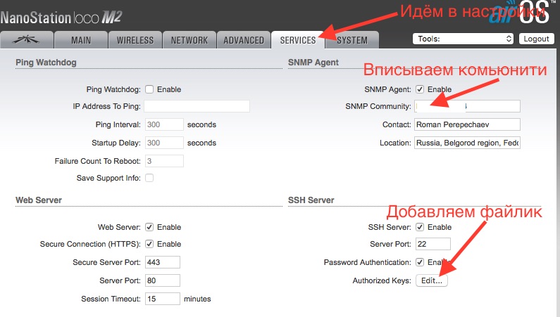 Опыты проводились на Ubiquiti NanoStation Loco M2 с прошивкой XM.v5.5.6