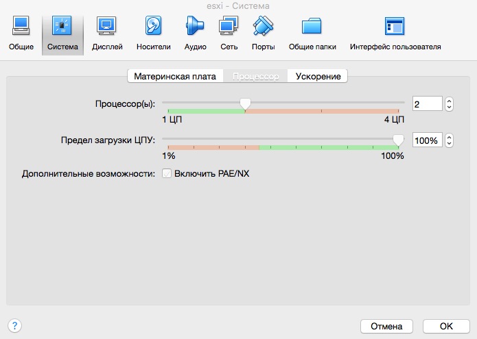 Самое главное - это подобрать параметры новой машины в виртуалбоксе. ESXi очень капризен и с первого раза это не получается. Потому ниже я привожу скриншоты тех настроек, которые у меня заработали: